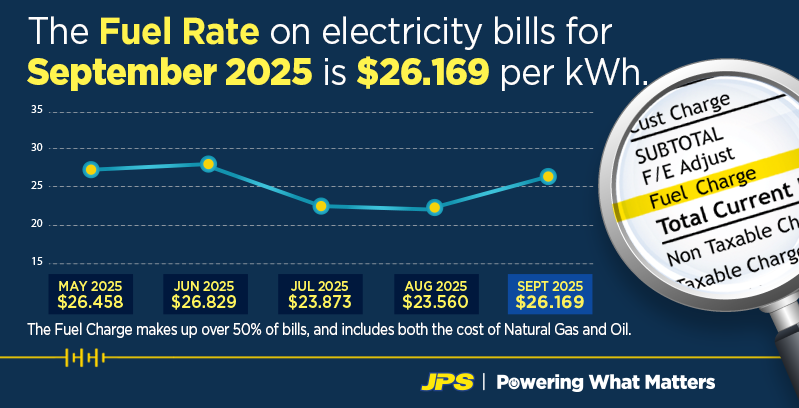 This covers the cost of the fuel required to produce and deliver each kWh of electricity. What you pay for fuel is based on the cost of oil and gas used to generate the electricity you use. This cost will change from one month to the next, depending on the cost of the fuel JPS purchases from suppliers. JPS buys oil from PetroJam, and natural gas from New Fortress Energy.